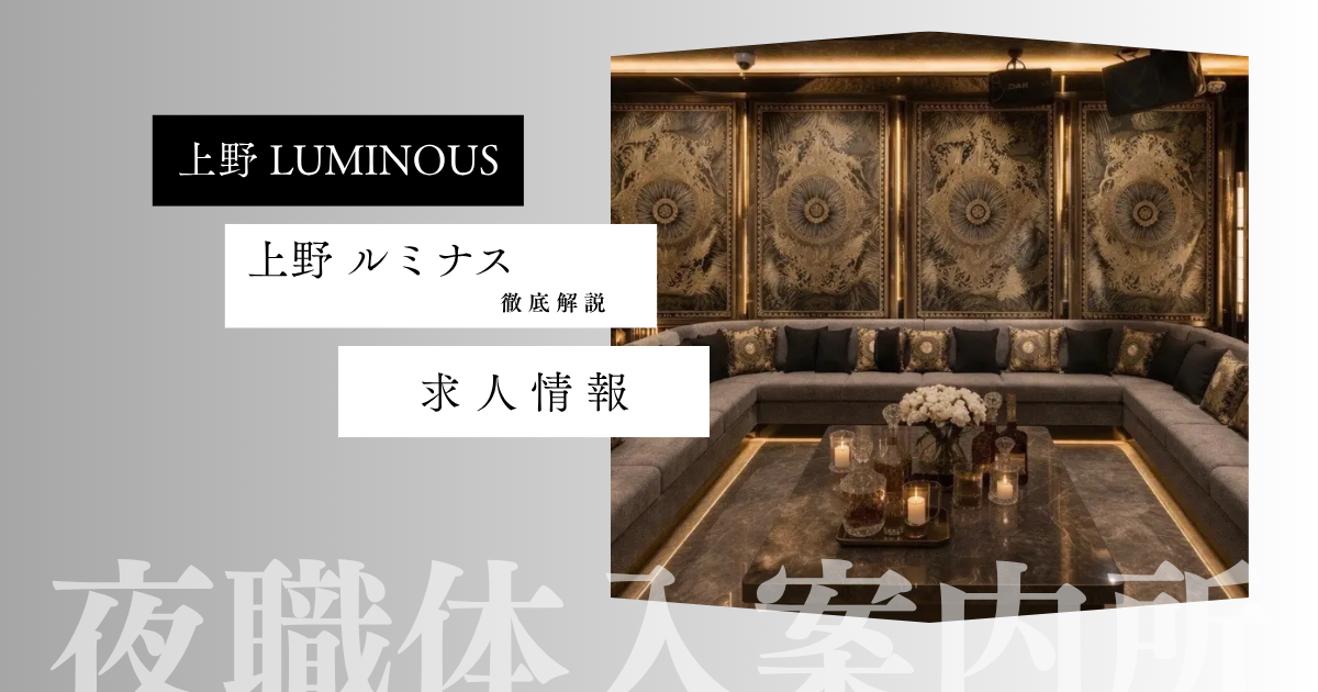 上野エリアにて2026年5月1日グランドオープン予定のキャバクラ「LUMINOUS(ルミナス)」の求人です。完全新規オープンのため、人間関係や派閥ゼロからスタートできるのが最大の魅力。現在面接もスタートしており、オープン前の今が最も採用されやすいタイミングです。