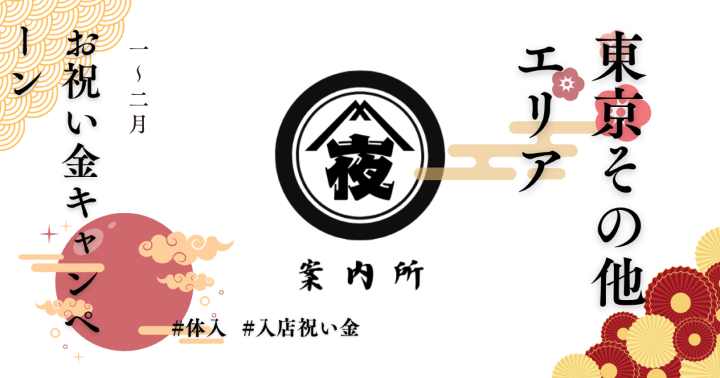 【2026年1月・2月】東京その他エリア お祝い金キャンペーン情報 2026年1月・2月は、東京のその他エリアでもお祝い金キャンペーンが充実しています。 こちらでは、立川エリアの対象店舗で実施中のキャンペーン内容をまとめました。 対象店舗 ジェム ドレス... -