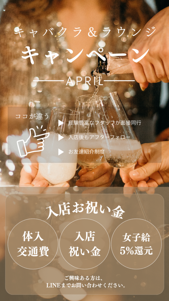現在は、体入足代・早期入店ボーナス・高時給保証に加え、夜職体入案内所では寮付きや引っ越しサポートなど、上京希望者にも好条件のキャンペーンが多く出ているタイミングです。